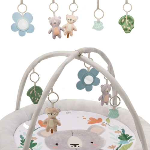 Комплектът включва 5 играчки за активност: огледало, 2 плюшени играчки, шумоляща играчка и гризалка; които подпомагат психомоторното развитие на вашето мъниче.