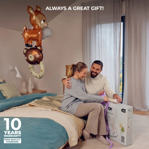 Образователната постелка COZYPLAY съчетава естетика и функционалност. Проектирана от европейски художник, тя е красиво допълнение към всеки интериор. Активната гимнастика подпомага развитието на вашето дете благодарение на играчките за активност, които могат да бъдат окачени в различни конфигурации на две плюшени ленти за играчки. Конструкцията на грифа за играчки прави постелката идеална основа за създаване на палатка. С COSYPLAY ежедневната грижа за вашето мъниче става по-лесна! Лесно е да поддържате постелката чиста, тъй като може да се пере в пералня. Освен това се сгъва лесно, което прави съхранението и транспортирането удобно.
