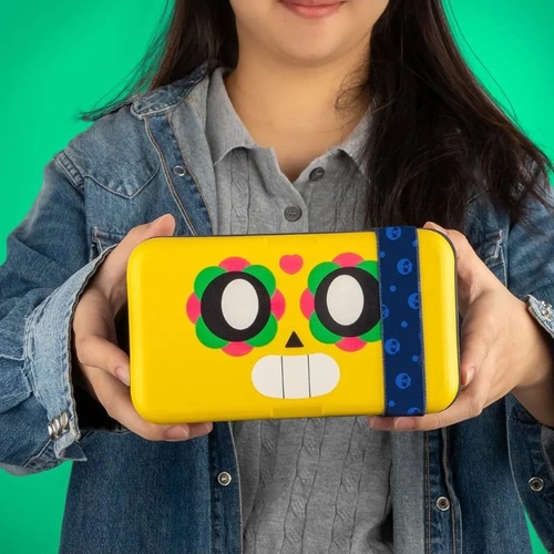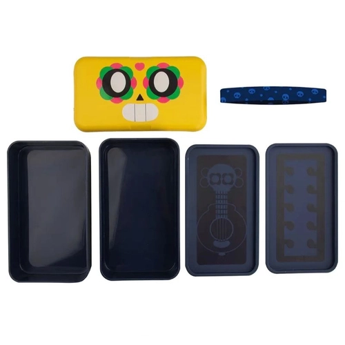 Кутията за обяд от Cinereplicas ще превърне всяко хапване в незабравимо преживяване, вдъхновено от популярната игра Brawl Stars. Моделът разполага с две отделения, всяко със собствен капак, което ви позволява да разделяте различни видове храна и да поддържате свежестта им. Горният капак показва пленителна графика на музикалния Support Brawler, Поко, а вътрешните капаци включват черен капак с шарка на шапката на Поко и силует на китара. Кутията се затваря сигурно с еластична лента. Всяко отделение е перфектно проектирано, за да държи различните храни отделно, а еластичната лента държи двете отделения здраво заедно за лесно транспортиране.