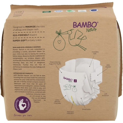 Дайте на новороденото си най-добрия старт с меките и нежни пелени Bambo Nature. С дишащия им дизайн и супер абсорбиращата сърцевина, вашето бебе ще бъде сухо и ще се чувства комфортно. Освен това, удобният индикатор за влажност ви показва точно кога е време за смяна.
