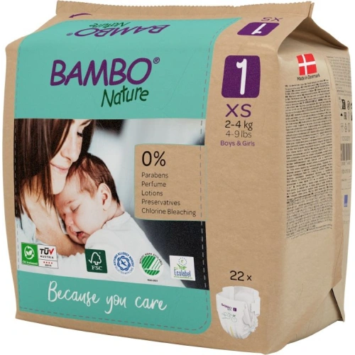 | Второ име | Еко пелени за еднократна употреба Bambo Nature, размер 1, XS, 2-4кг., 22 броя, хартиена опаковка |
