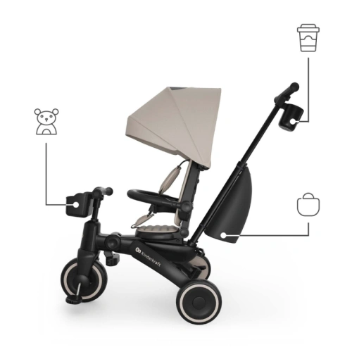 Когато просто излизате за известно време, лекотата на използване е ключова. Сгъваемата рамка ви позволява да опаковате триколката в малък багажник или да я съхранявате в коридор – тя стои стабилно както вертикално, така и хоризонтално. А когато е време за самостоятелно шофиране, получавате и режим на балансиращ велосипед в един продукт.