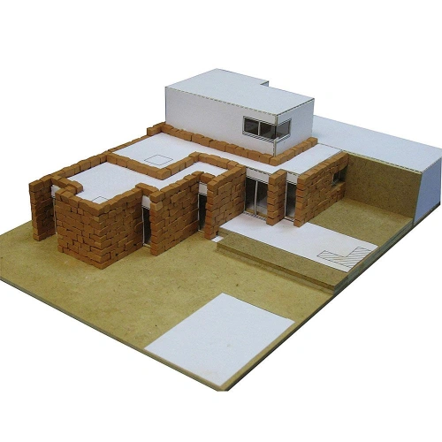 Макетът на къщата се прави от картон, върху който след това се залепват и изграждат останалите елементи - тухли, керемидии др,. Системата за изграждане на макетите е патентована.