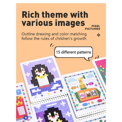 Всяка страница съдържа пикселни модели на животни, които детето оцветява, следвайки координатна система или цветови код.