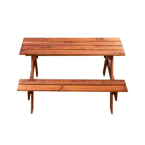 С новия ни модел детска масичка Вашето дете ще посреща и изпраща всеки ден, изпълнен с игри и забавления. Удобна, ергономична, стабилна и практична тя ще е верен спътник в летните дни за Вашето мъниче и неговите приятели. Поставете я сред зеленината на природата във Вашия двор и се наслаждавайте на гледката как детето Ви изживява детството си по един неповторим начин. Детската масичка се състои от стабилна основа и две пейки от двете ѝ страни, изработени от естествена дървесина. На нея децата могат да рисуват, да се хранят или да играят различни настолни или ролеви игри - въпрос на въображение. С практичните си размери може да събере поне 4 деца и да се използва както на открито в двора, така и на закрито в дома или на балкона. детска масичка с две пейки изработена от естествена дървесина ергономична, стабилна и практична