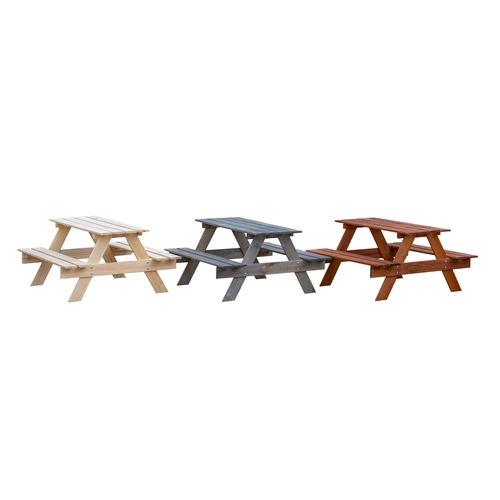 С новия ни модел детска масичка Вашето дете ще посреща и изпраща всеки ден, изпълнен с игри и забавления. Удобна, ергономична, стабилна и практична тя ще е верен спътник в летните дни за Вашето мъниче и неговите приятели. Поставете я сред зеленината на природата във Вашия двор и се наслаждавайте на гледката как детето Ви изживява детството си по един неповторим начин. Детската масичка се състои от стабилна основа и две пейки от двете ѝ страни, изработени от естествена дървесина. На нея децата могат да рисуват, да се хранят или да играят различни настолни или ролеви игри - въпрос на въображение. С практичните си размери може да събере поне 4 деца и да се използва както на открито в двора, така и на закрито в дома или на балкона. детска масичка с две пейки изработена от естествена дървесина ергономична, стабилна и практична