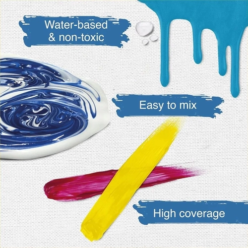 Комплект акрилни бои ITA ART 24x500ml имат отлични свойства, бързо изсъхват и са лесни за използване. Цветовете имат висока непрозрачност и добра светлоустойчивост, както и оптимална цветова сила. Могат да се разреждат с вода и следователно са изключително променливи в своята консистенция. Цветовете са произведени от абсолютно висококачествени пигменти и ви гарантират висококачествен продукт. Цветовете са трайно водоустойчиви след изсъхване.