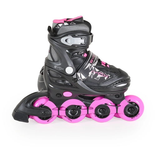 Ролери Dazzle – розови, размер L (38–41) от Byox са стилен и практичен избор за активни деца и тийнейджъри, които обичат движението и забавлението. Благодарение на регулируемия си дизайн, ролерите растат заедно с крака и осигуряват комфорт и стабилност при каране.