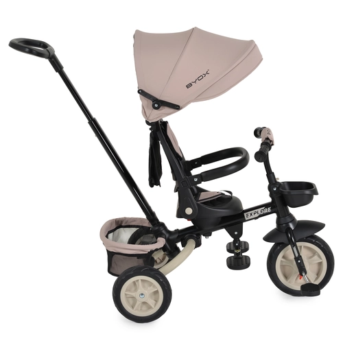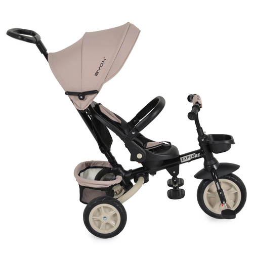 Триколка Explore от Byox, създадена за деца от 12 до 60 месеца с тегло до 25 кг. Explore се адаптира според възрастта и уменията на детето. Моделът предлага различни режими на използване, които позволяват плавен преход от родителски контрол към самостоятелно каране.