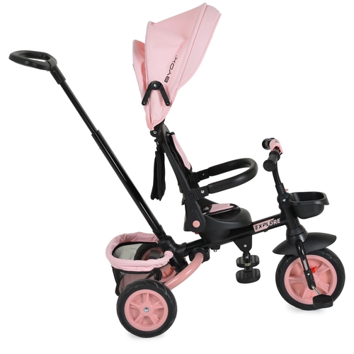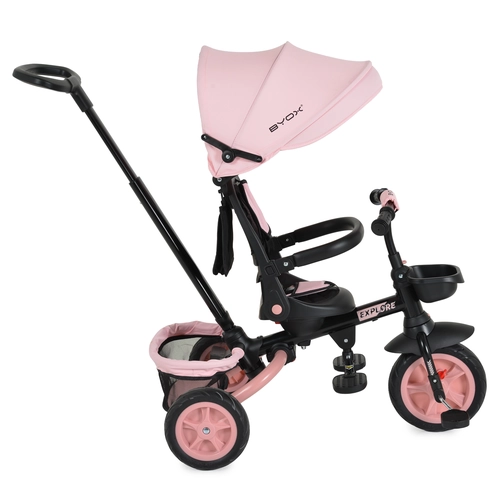 Триколка Explore от Byox, създадена за деца от 12 до 60 месеца с тегло до 25 кг. Explore се адаптира според възрастта и уменията на детето. Моделът предлага различни режими на използване, които позволяват плавен преход от родителски контрол към самостоятелно каране.