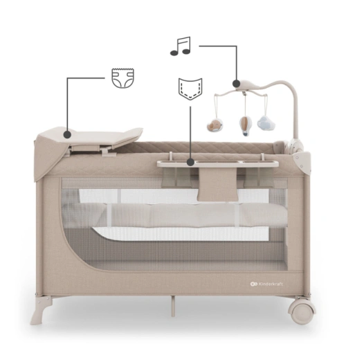 Сгъваема бебешка кошара на 2 нива с аксесоари Leody Up Beige PAT74322