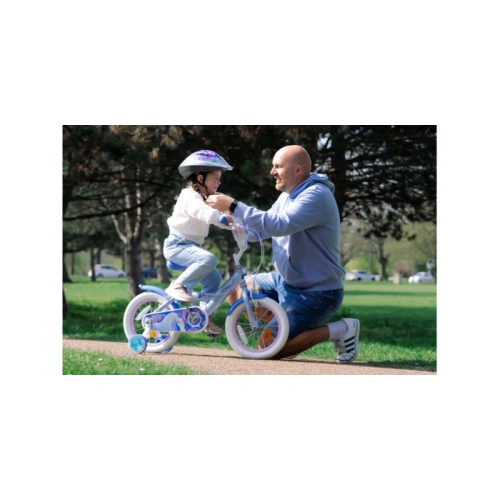 Впусни се в приказно приключение с прекрасен аксесоар - тази очарователна каска на Disney Frozen! С красиви графики на Елза и Анна, тази каска е перфектният аксесоар за опознаване на собственото ви кралство с колело или тротинетка. Проектирана за безопасност и комфорт, тази каска ще защити вашето мъниче във всичките му приключения. Лесната за използване система за регулиране отзад позволява плътно и сигурно прилягане на глава с размери от 50-54 см и може бързо да се регулира, спрямо нуждите на детето.