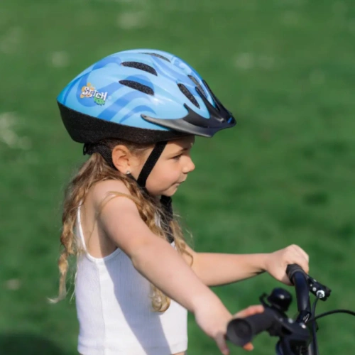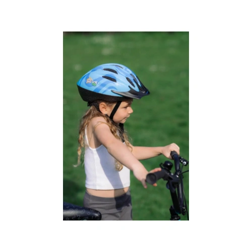 Създадена едновременно за забавление и безопасност, тази каска осигурява защита за всички земни приключения. Лесната за използване система за регулиране на отзад осигурява перфектно и плътно прилягане за размери на главата от 50-54 см и може да се регулира, докато детето ви расте. За да му е хладно и удобно, дори в слънчев ден в Хавай, десет отвора за вентилация осигуряват отличен въздушен поток.